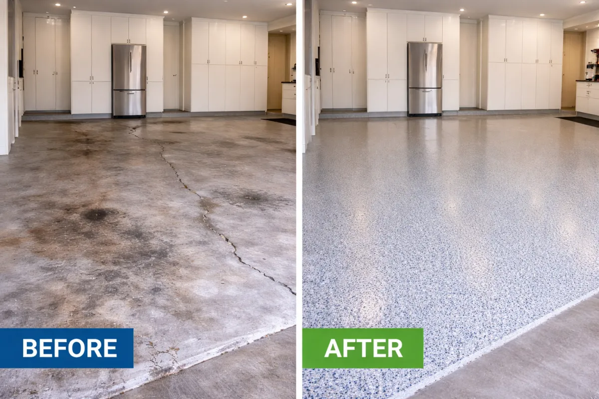 ✔ No more stains or dusty concrete ✔ Easy to clean — just wipe or hose off ✔ Slip-resistant for safety ✔ Installed in as little as 1 day ✔ Built to last 15+ years